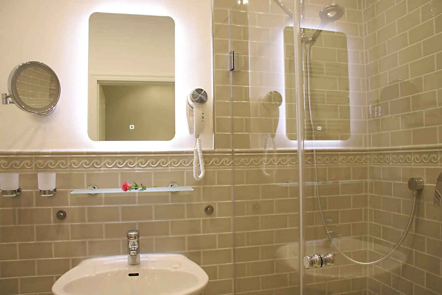Unsere größten Doppelzimmer, die zwei Apartments, sind in der 3. Etage. Achtung! Wir haben keinen Fahrstuhl, dafür eine luxuriöse Marmortreppe. Die höchsten Zimmer sind die Schönsten! Bevorzugen Sie eine niedrigere Etage? Bitte informieren Sie uns darüber gleich bei Ihrer Buchung. Beide Apartments haben eine Kochnische und extra Sitzecke. Und: Eine Badewanne. Entspannen Sie bei einem heißen Schaumbad!